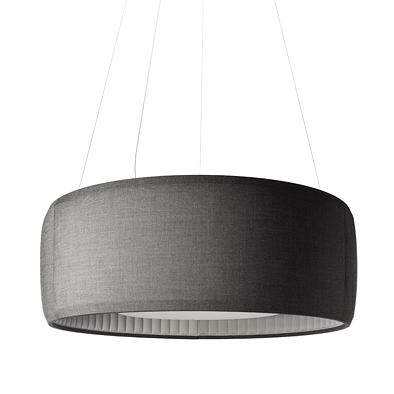シレンツィオは、今日欧州で注目されている、上質な光と吸音効果両方にこだわった大型のサスペンション照明です。家具や空間に合わせやすいよう、クヴァドラの人気ファブリック「Remix2」を採用しています。レストランやロビーなど、音環境にも工夫が求められる場面に最適です。