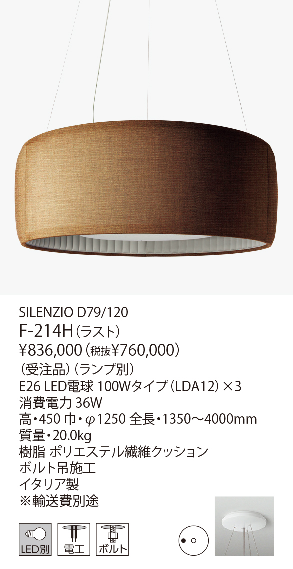 シレンツィオは、今日欧州で注目されている、上質な光と吸音効果両方にこだわった大型のサスペンション照明です。家具や空間に合わせやすいよう、クヴァドラの人気ファブリック「Remix2」を採用しています。レストランやロビーなど、音環境にも工夫が求められる場面に最適です。