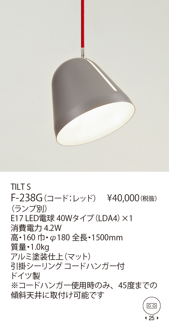 ティルトシリーズは、スリットにあわせシェードを動かすだけで、簡単に照射方向を変えることができる、ユニークな構造を採用したペンダントライトです。「Tilt」とは、英語で傾けるという意味で、文字通りシェードを傾けて、ペンダント照明の状態からスポットライトのように照射ができます。デザインは、ニュイタの共同創設者でもある、ヨハネス・マルモンとヨハネス・ミュラーによるデザインユニット jjoo design。