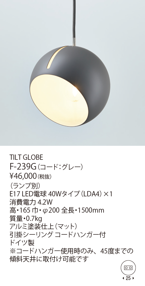 ティルトシリーズは、スリットにあわせシェードを動かすだけで、簡単に照射方向を変えることができる、ユニークな構造を採用したペンダントライトです。「Tilt」とは、英語で傾けるという意味で、文字通りシェードを傾けて、ペンダント照明の状態からスポットライトのように照射ができます。デザインは、ニュイタの共同創設者でもある、ヨハネス・マルモンとヨハネス・ミュラーによるデザインユニット jjoo design。