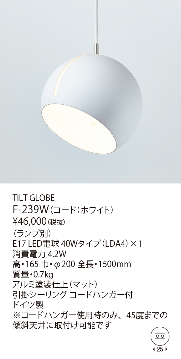 ティルトシリーズは、スリットにあわせシェードを動かすだけで、簡単に照射方向を変えることができる、ユニークな構造を採用したペンダントライトです。「Tilt」とは、英語で傾けるという意味で、文字通りシェードを傾けて、ペンダント照明の状態からスポットライトのように照射ができます。デザインは、ニュイタの共同創設者でもある、ヨハネス・マルモンとヨハネス・ミュラーによるデザインユニット jjoo design。