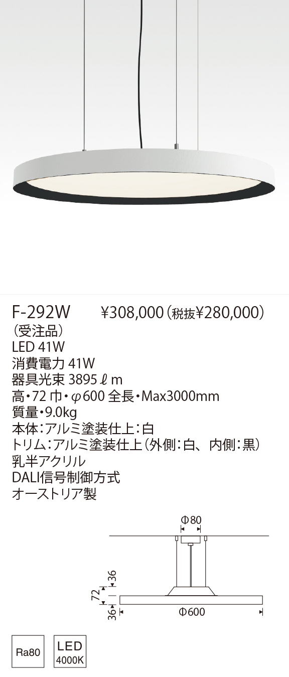 - 本体:アルミ塗装仕上:白 トリム:アルミ塗装仕上(外側:黒、内側:白) 乳半アクリル
