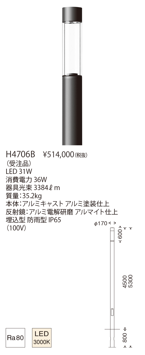 - 高・4500 巾・φ170 埋込深・800全長・5300mm