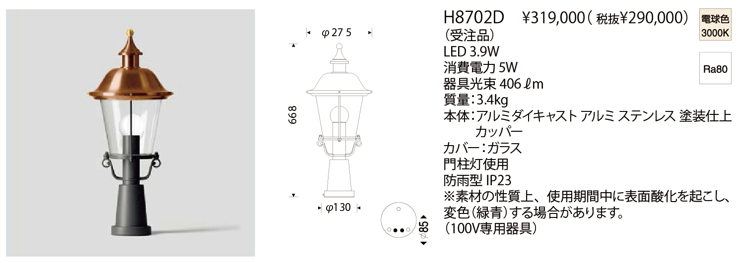 - 本体:アルミダイキャスト アルミ ステンレス塗装仕上 カッパー