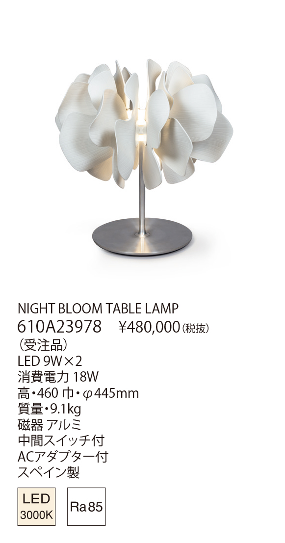 Result 検索結果 検索結果:11件 現在選択中の条件 色温度: 電球色3000K 材質: 磁器 商品カテゴリー 商品カテゴリー 選択して下さい インドア-ペンダント インドア-スタンドライト さらに絞り込む ブランド ブランド 選択して下さい LLADRO(リヤドロ/スペイン) 商品タイプ ベース デコラティブ 和風 吸音 システムライト タスクライト テーブルライト フロアライト ベースライト アジャスタブル ウォールウォッシャー アクセサリー スポットライト ペンダントライト アームライト ミュージアム メディカル 吊り下げ 直付け 防湿/防雨防湿 オプション/パーツ類 光源タイプ LED一体型 LED電球 その他 白熱球 色温度 選択中 電球色2200K 電球色2350K 電球色3500K 電球色2700K 電球色3000K 温白色3500K 白色4000K 昼白色5000K 昼光色6500K 調色 カラー その他 器具光束 500ℓm以下 501~1500ℓm 1501~3000ℓm 3001ℓm以上 演色性 Ra 90 以上 リモコン・スイッチ・センサ 無線ユニット 調光・調色スイッチ付 スイッチ付 調光スイッチ付 リモコン付 タブレット別 取付方法 取付簡易型 引掛シーリング ライティングダクト 工事 フランジ・直付 ジャックイン 材質 選択中 金属 樹脂 木 布 ガラス 磁器 和紙 その他 選択項目をすべて解除 検索結果:11件 投稿のページ送り 1 2 Next 投稿のページ送り 1 2 表示順 : 型番順 価格が安い順 価格が高い ページ内すべてを選択 選択を解除 チェックした項目をダウンロード 全て選択 小組画像 全て選択 仕様図 全て選択 取扱説明書 全て選択 姿図1 全て選択 姿図2 全て選択 配光データ 全て選択 IESデータ 全て選択 商品画像 全て選択 3D CAD 全て選択 REVITデータ 全て選択 LOTUS FIREFLY LAMP(カタログ非掲載) 610A23759 オープン価格 色温度 3000K 演色性 Ra 90 この製品データを全て選択 小組画像 仕様図 取扱説明書 姿図1 姿図2 配光データ IESデータ 商品画像 3D CAD REVITデータ LOTUS FIREFLY LAMP(カタログ非掲載) 610A23761 オープン価格 色温度 3000K 演色性 Ra 90 この製品データを全て選択 小組画像 仕様図 取扱説明書 姿図1 姿図2 配光データ IESデータ 商品画像 3D CAD REVITデータ PALM FIREFLY LAMP(カタログ非掲載) 610A23763 オープン価格 色温度 3000K 演色性 Ra 90 この製品データを全て選択 小組画像 仕様図 取扱説明書 姿図1 姿図2 配光データ IESデータ 商品画像 3D CAD REVITデータ CACTUS FIREFLY LAMP(カタログ非掲載) 610A23767 オープン価格 色温度 3000K 演色性 Ra 90 この製品データを全て選択 小組画像 仕様図 取扱説明書 姿図1 姿図2 配光データ IESデータ 商品画像 3D CAD REVITデータ PALM FIREFLY LAMP(カタログ非掲載) 610A23793 オープン価格 色温度 3000K 演色性 Ra 90 この製品データを全て選択 小組画像 仕様図 取扱説明書 姿図1 姿図2 配光データ IESデータ 商品画像 3D CAD REVITデータ CACTUS FIREFLY LAMP(カタログ非掲載) 610A23794 オープン価格 色温度 3000K 演色性 Ra 90 この製品データを全て選択 小組画像 仕様図 取扱説明書 姿図1 姿図2 配光データ IESデータ 商品画像 3D CAD REVITデータ SUNFLOWER FIREFLY LAMP(カタログ非掲載) 610A23920 オープン価格 色温度 3000K 演色性 Ra 90 この製品データを全て選択 小組画像 仕様図 取扱説明書 姿図1 姿図2 配光データ IESデータ 商品画像 3D CAD REVITデータ SUNFLOWER FIREFLY LAMP(カタログ非掲載) 610A23921 オープン価格 色温度 3000K 演色性 Ra 90 この製品データを全て選択 小組画像 仕様図 取扱説明書 姿図1 姿図2 配光データ IESデータ 商品画像 3D CAD REVITデータ NIGHT BLOOM TABLE LAMP(カタログ非掲載) 610A23978 オープン価格 色温度 3000K この製品データを全て選択 小組画像 仕様図 取扱説明書 姿図1 姿図2 配光データ IESデータ 商品画像 3D CAD REVITデータ NIGHT BLOOM PENDANT LAMP 40(カタログ非掲載) 610A23988 オープン価格 色温度 3000K 演色性 Ra 85 この製品データを全て選択 小組画像 仕様図 取扱説明書 姿図1 姿図2 配光データ IESデータ 商品画像 3D CAD REVITデータ ページ内すべてを選択 選択を解除 チェックした項目をダウンロード 投稿のページ送り 1 2 Next 投稿のページ送り 1 2 Index