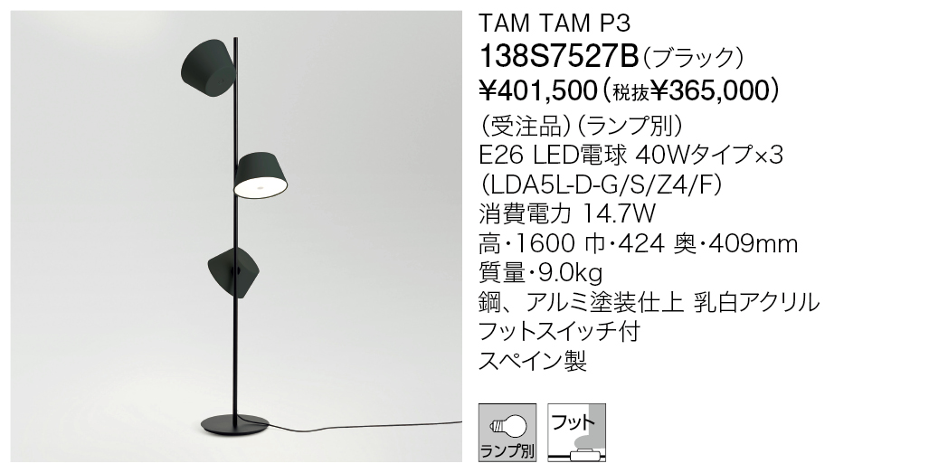 Result 検索結果 検索結果:2004件 現在選択中の条件 材質: 金属 商品カテゴリー 商品カテゴリー 選択して下さい インドア-ペンダント インドア-シーリング インドア-シャンデリア インドア-ブラケット インドア-スタンドライト インドア-ダウンライト インドア-ベースライト インドア-間接照明 インドア-スポットライト インドア-システムライト アウトドア-屋外ダウンライト・シーリング アウトドア-屋外ブラケット アウトドア-屋外フットライト アウトドア-屋外スポットライト アウトドア-屋外地中埋設照明 アウトドア-屋外水中照明 アウトドア-屋外ボラード アウトドア-屋外ポール灯 さらに絞り込む ブランド ブランド 選択して下さい アークテイク Midgard Licht OSRAM Davide Groppi YAMAGIWA ASTEP(アステップ/デンマーク) &tradition(アンド・トラディション/デンマーク) Artek(アルテック/フィンランド) Artemide(アルテミデ/イタリア) BEGA(ベガ/ドイツ) CARPYEN(キャルピエン/スペイン) DCW éditions(DCWエディションズ/フランス) Estiluz(エスティルース/スペイン) FLOS(フロス/イタリア) FOSCARINI(フォスカリーニ/イタリア) frosted FRANK LLOYD WRIGHT®(フランク・ロイド・ライト) FRITZ HANSEN(フリッツ・ハンセン/デンマーク) greenholt(グリーンホルト/デンマーク) Herman Miller(ハーマンミラー/アメリカ) HADELAND(ハーデラン/ノルウェー) HALO EDITION(ハロ・エディション/イタリア) hollands licht(ホランズリヒト/オランダ) INNOLUX(イノルクス/フィンランド) ILTI LUCE(イルティルーチェ/イタリア) INGO MAURER(インゴ・マウラー/ドイツ) Karakter(カラクター/デンマーク) LEE BROOM(リー・ブルーム/イギリス) LE KLINT(レ・クリント/デンマーク) louis poulsen(ルイスポールセン/デンマーク) LUCEPLAN(ルーチェプラン/イタリア) LZF(ルシフェル/スペイン) MADE BY HAND(メイド・バイ・ハンド/デンマーク) Manooi(マノーイ/ハンガリー) marset(マルセット/スペイン) MICHAELANASTASSIADES(マイケルアナスタシアデス/イギリス) MOLTO LUCE(モルトルーチェ/オーストリア) MUUTO(ムート/デンマーク) NEMO(ネモ/イタリア) Northern(ノーザン/ノルウェー) NYTA(ニュイタ/ドイツ) PANDUL(パンドゥル/デンマーク) SAMMODE STUDIO(サンモードスタジオ/フランス) TOM DIXON(トム・ディクソン/イギリス) VERPAN(ヴァーパン/デンマーク) VIBIA(ヴィビア/スペイン) WÄSTBERG(ヴァストベリ/スウェーデン) Vitra(ヴィトラ/スイス) 商品タイプ ベース デコラティブ 和風 吸音 システムライト タスクライト テーブルライト フロアライト ベースライト アジャスタブル ウォールウォッシャー アクセサリー スポットライト ペンダントライト アームライト ミュージアム メディカル 吊り下げ 直付け 防湿/防雨防湿 オプション/パーツ類 畳数 10~12畳 4.5畳 4.5~6畳 6~8畳 8~10畳 ~12畳 ~4.5畳 ~6畳 ~8畳 ~10畳 光源タイプ LED一体型 LED電球 その他 白熱球 色温度 電球色2200K 電球色2350K 電球色3500K 電球色2700K 電球色3000K 温白色3500K 白色4000K 昼白色5000K 昼光色6500K 調色 カラー その他 器具光束 500ℓm以下 501~1500ℓm 1501~3000ℓm 3001ℓm以上 演色性 Ra 90 以上 配光角度 〜7° 8°〜15° 16°〜24° 25°〜35° 36°〜 可変 リモコン・スイッチ・センサ 無線ユニット 調光・調色スイッチ付 スイッチ付 調光スイッチ付 リモコン付 タブレット別 取付方法 取付簡易型 引掛シーリング ライティングダクト 工事 フランジ・直付 ジャックイン 材質 選択中 金属 樹脂 木 布 ガラス 磁器 和紙 その他 取付条件 傾斜天井可 照明データ 0 3D CADデータ IESデータ REVITデータ 配光データ 選択項目をすべて解除 検索結果:2004件 投稿のページ送り Prev 1 … 17 18 19 20 21 … 201 Next 投稿のページ送り 1 … 17 18 19 20 21 … 201 表示順 : 型番順 価格が安い順 価格が高い ページ内すべてを選択 選択を解除 チェックした項目をダウンロード 全て選択 小組画像 全て選択 仕様図 全て選択 取扱説明書 全て選択 姿図1 全て選択 姿図2 全て選択 配光データ 全て選択 IESデータ 全て選択 商品画像 全て選択 3D CAD 全て選択 REVITデータ 全て選択 LED GINGER P 138S7498L 税込 ¥352,000 (税抜 ¥320,000) 色温度 2700K 演色性 90 この製品データを全て選択 小組画像 仕様図 取扱説明書 姿図1 姿図2 配光データ IESデータ 商品画像 3D CAD REVITデータ TAM TAM P3 138S7527B 税込 ¥407,000 (税抜 ¥370,000) この製品データを全て選択 小組画像 仕様図 取扱説明書 姿図1 姿図2 配光データ IESデータ 商品画像 3D CAD REVITデータ TAM TAM P3 138S7527L 税込 ¥425,700 (税抜 ¥387,000) この製品データを全て選択 小組画像 仕様図 取扱説明書 姿図1 姿図2 配光データ IESデータ 商品画像 3D CAD REVITデータ TAM TAM P2 138S7528B 税込 ¥338,800 (税抜 ¥308,000) この製品データを全て選択 小組画像 仕様図 取扱説明書 姿図1 姿図2 配光データ IESデータ 商品画像 3D CAD REVITデータ TAM TAM P2 138S7528L 税込 ¥349,800 (税抜 ¥318,000) この製品データを全て選択 小組画像 仕様図 取扱説明書 姿図1 姿図2 配光データ IESデータ 商品画像 3D CAD REVITデータ NEW 延長ポール60cm 138Z1279B 税込 ¥20,900 (税抜 ¥19,000) この製品データを全て選択 小組画像 仕様図 取扱説明書 姿図1 姿図2 配光デ