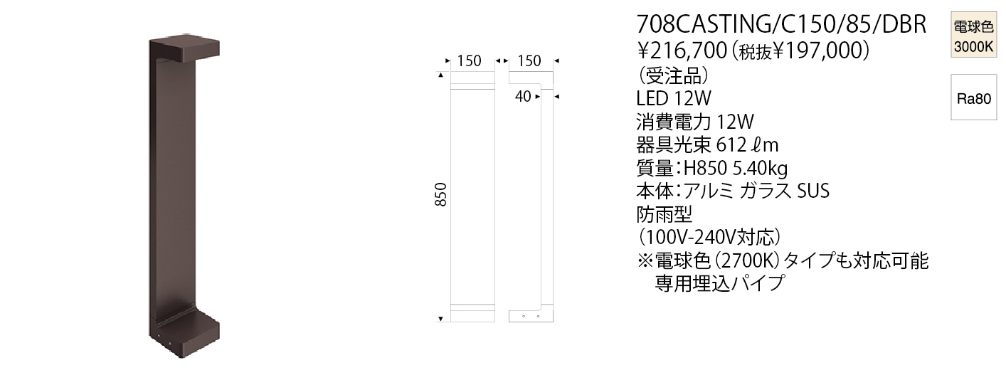 Result 検索結果 検索結果:843件 現在選択中の条件 色温度: 電球色3000K 商品カテゴリー 商品カテゴリー 選択して下さい インドア-ペンダント インドア-シーリング インドア-シャンデリア インドア-ブラケット インドア-スタンドライト インドア-ダウンライト インドア-ベースライト インドア-間接照明 インドア-スポットライト インドア-システムライト アウトドア-屋外ダウンライト・シーリング アウトドア-屋外ブラケット アウトドア-屋外フットライト アウトドア-屋外スポットライト アウトドア-屋外地中埋設照明 アウトドア-屋外水中照明 アウトドア-屋外ボラード アウトドア-屋外ポール灯 さらに絞り込む ブランド ブランド 選択して下さい YAMAGIWA Artemide(アルテミデ/イタリア) BEGA(ベガ/ドイツ) CARPYEN(キャルピエン/スペイン) Estiluz(エスティルース/スペイン) FLOS(フロス/イタリア) FOSCARINI(フォスカリーニ/イタリア) frosted FRANK LLOYD WRIGHT®(フランク・ロイド・ライト) ILTI LUCE(イルティルーチェ/イタリア) Karakter(カラクター/デンマーク) LLADRO(リヤドロ/スペイン) louis poulsen(ルイスポールセン/デンマーク) LUCEPLAN(ルーチェプラン/イタリア) LZF(ルシフェル/スペイン) Manooi(マノーイ/ハンガリー) MOLTO LUCE(モルトルーチェ/オーストリア) NEMO(ネモ/イタリア) TOM DIXON(トム・ディクソン/イギリス) VIBIA(ヴィビア/スペイン) WÄSTBERG(ヴァストベリ/スウェーデン) 商品タイプ ベース デコラティブ 和風 吸音 システムライト タスクライト テーブルライト フロアライト ベースライト アジャスタブル ウォールウォッシャー アクセサリー スポットライト ペンダントライト アームライト ミュージアム メディカル 吊り下げ 直付け 防湿/防雨防湿 オプション/パーツ類 畳数 10~12畳 4.5畳 4.5~6畳 6~8畳 8~10畳 ~12畳 ~4.5畳 ~6畳 ~8畳 ~10畳 光源タイプ LED一体型 LED電球 その他 白熱球 色温度 選択中 電球色2200K 電球色2350K 電球色3500K 電球色2700K 電球色3000K 温白色3500K 白色4000K 昼白色5000K 昼光色6500K 調色 カラー その他 器具光束 500ℓm以下 501~1500ℓm 1501~3000ℓm 3001ℓm以上 演色性 Ra 90 以上 配光角度 〜7° 8°〜15° 16°〜24° 25°〜35° 36°〜 可変 リモコン・スイッチ・センサ 無線ユニット 調光・調色スイッチ付 スイッチ付 調光スイッチ付 リモコン付 タブレット別 取付方法 取付簡易型 引掛シーリング ライティングダクト 工事 フランジ・直付 ジャックイン 材質 金属 樹脂 木 布 ガラス 磁器 和紙 その他 照明データ 0 3D CADデータ IESデータ REVITデータ 配光データ 選択項目をすべて解除 検索結果:843件 投稿のページ送り Prev 1 … 26 27 28 29 30 … 85 Next 投稿のページ送り 1 … 26 27 28 29 30 … 85 表示順 : 型番順 価格が安い順 価格が高い ページ内すべてを選択 選択を解除 チェックした項目をダウンロード 全て選択 小組画像 全て選択 仕様図 全て選択 取扱説明書 全て選択 姿図1 全て選択 姿図2 全て選択 配光データ 全て選択 IESデータ 全て選択 商品画像 全て選択 3D CAD 全て選択 REVITデータ 全て選択 Casting C 150 H850 Deep Brown 708CASTING/C150/85/DBR 税込 ¥182,600 (税抜 ¥166,000) 色温度 3000K 演色性 80 この製品データを全て選択 小組画像 仕様図 取扱説明書 姿図1 姿図2 配光データ IESデータ 商品画像 3D CAD REVITデータ Casting C 150 H850 Dark Grey 708CASTING/C150/85/DGR 税込 ¥182,600 (税抜 ¥166,000) 色温度 3000K 演色性 80 この製品データを全て選択 小組画像 仕様図 取扱説明書 姿図1 姿図2 配光データ IESデータ 商品画像 3D CAD REVITデータ Casting C 150 H850 Grey 708CASTING/C150/85/GRY 税込 ¥182,600 (税抜 ¥166,000) 色温度 3000K 演色性 80 この製品データを全て選択 小組画像 仕様図 取扱説明書 姿図1 姿図2 配光データ IESデータ 商品画像 3D CAD REVITデータ Casting C 150 H850 White 708CASTING/C150/85/WHI 税込 ¥182,600 (税抜 ¥166,000) 色温度 3000K 演色性 80 この製品データを全て選択 小組画像 仕様図 取扱説明書 姿図1 姿図2 配光データ IESデータ 商品画像 3D CAD REVITデータ Casting T 100 H200 Black 708CASTING/T100/20/BLK 税込 ¥135,300 (税抜 ¥123,000) 色温度 3000K 演色性 80 この製品データを全て選択 小組画像 仕様図 取扱説明書 姿図1 姿図2 配光データ IESデータ 商品画像 3D CAD REVITデータ Casting T 100 H200 Deep Brown 708CASTING/T100/20/DBR 税込 ¥135,300 (税抜 ¥123,000) 色温度 3000K 演色性 80 この製品データを全て選択 小組画像 仕様図 取扱説明書 姿図1 姿図2 配光データ IESデータ 商品画像 3D CAD REVITデータ Casting T 100 H200 Dark Grey 708CASTING/T100/20/DGR 税込 ¥135,300 (税抜 ¥123,000) 色温度 3000K 演色性 80 この製品データを全て選択 小組画像 仕様図 取扱説明書 姿図1 姿図2 配光データ IESデータ 商品画像 3D CAD REVITデータ Casting T 100 H200 Grey 708CASTING/T100/20/GRY 税込 ¥135,300 (税抜 ¥123,000) 色温度 3000K 演色性 80 この製品データを全て選択 小組画像 仕様図 取扱説明書 姿図1 姿図2 配光データ IESデータ 商品画像 3D CAD REVITデータ Casting T 100 H200 White 708CASTING/T100/20/WHI 税込 ¥135,300 (税抜 ¥123,000) 色温度 3000K 演色性 80 この製品データを全て選択 小組画像 仕様図 取扱説明書 姿図1 姿図2 配光データ IESデータ 商品画像 3D CAD REVITデ