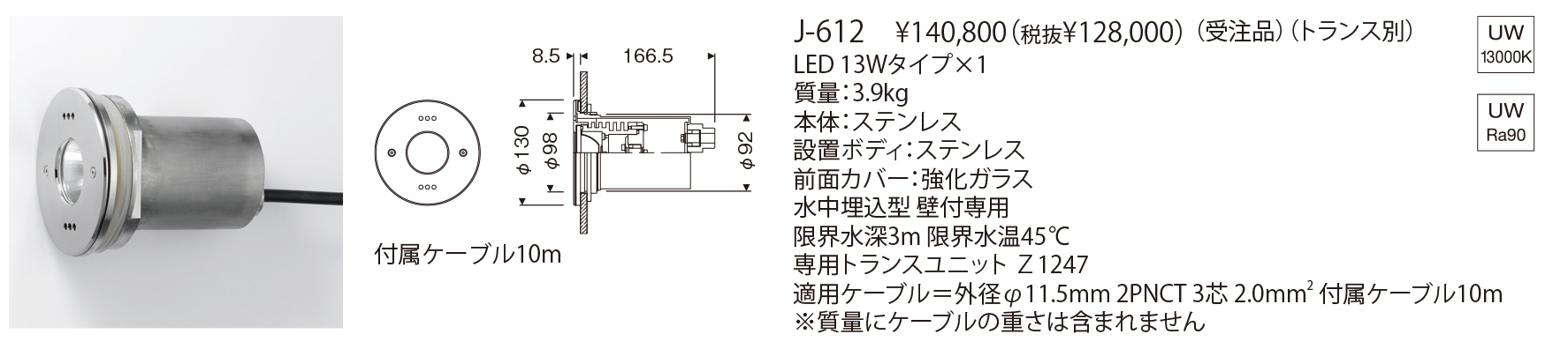 高・φ130 奥・8.5 埋込深・166.5mm