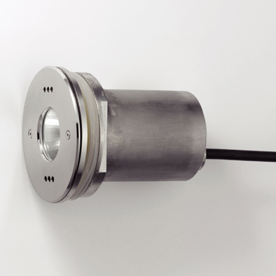水中壁面に設置するタイプの水中照明シリーズです。灯具と設置ボックスは容易に取り外しができる構造です。LEDを使用した水中照明の中では最大級のパワーをもつ、13WのLEDを使用しています。パワーのある光は水中を明るく照らしだします。