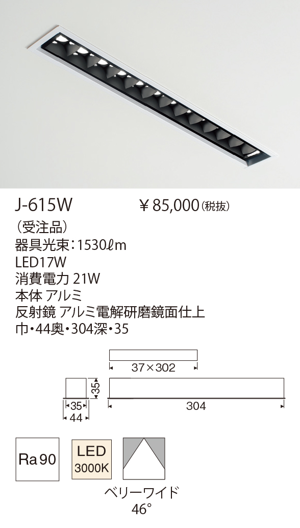 幅35mmのスリムなライン照明です。グレアレスグリットとレンズ配光により、器具の存在を感じさせずに効果的なテクニカルライティングが行えます。ナロー/ワイド&ナロー/ベリーワイドの3配光からお選びください。