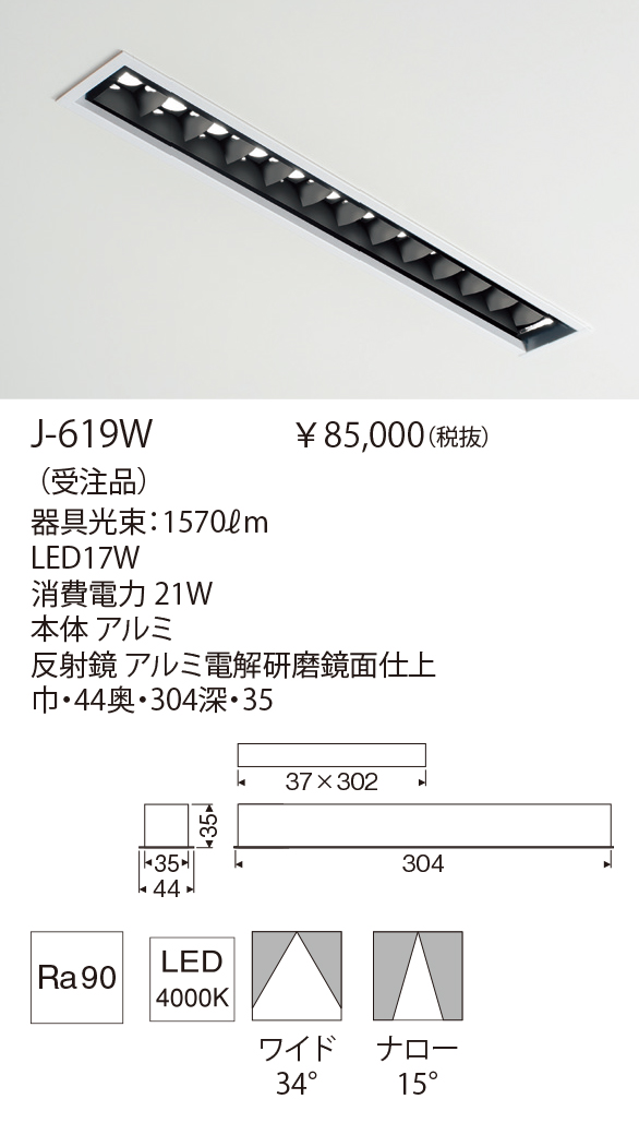 幅35mmのスリムなライン照明です。グレアレスグリットとレンズ配光により、器具の存在を感じさせずに効果的なテクニカルライティングが行えます。ナロー/ワイド&ナロー/ベリーワイドの3配光からお選びください。