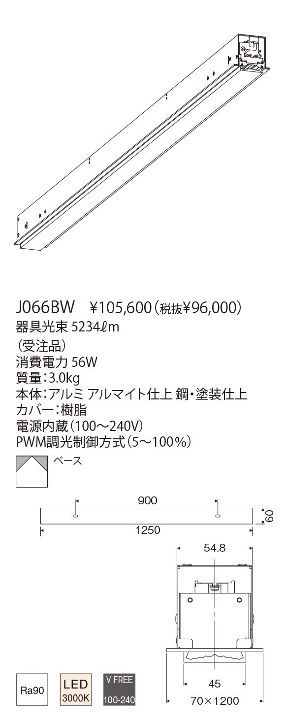 - 高・10.1 巾・1200 奥・70 埋込高・60mm