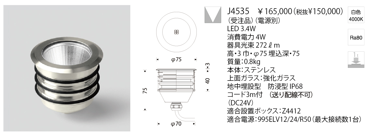光源にLEDを採用したミニマムサイズの地中埋設器具です。φ37・φ51・φ75の3サイズで、φ37はインジケータタイプと照射タイプの2種類あります。