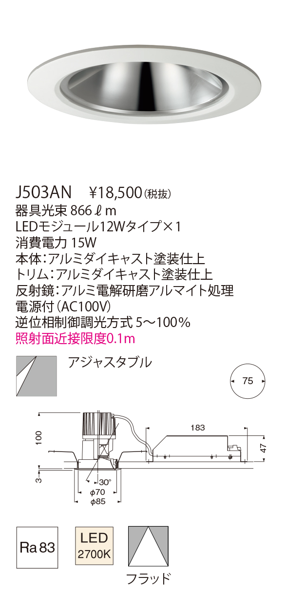 - 巾・φ85 埋込高・100 切込寸法・φ75mm