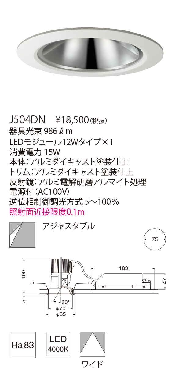 - 巾・φ85 埋込高・100 切込寸法・φ75mm