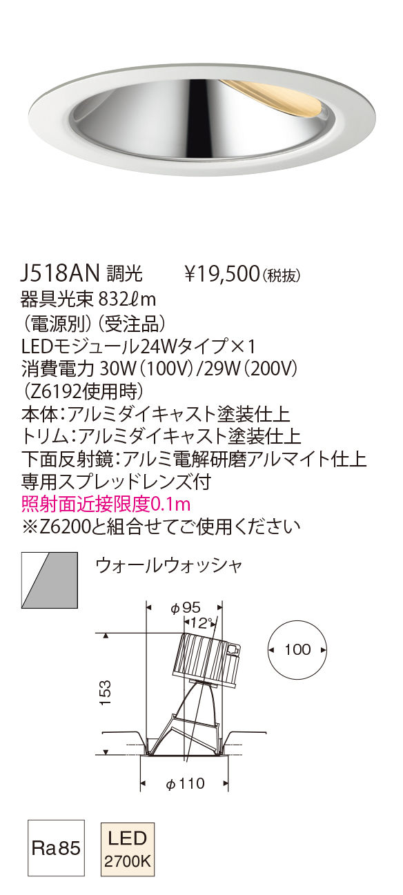 ベースタイプ・アジャスタブルタイプのφ100mmの切込寸法に統一されているので組み合わせて使用した際、同径となりすっきりとした印象になります。4種類の色温度が揃い、2000ℓmのワンコアタイプのLEDモジュールの採用によるハイパワータイプです。均整度の高い壁面照度が実現できます。