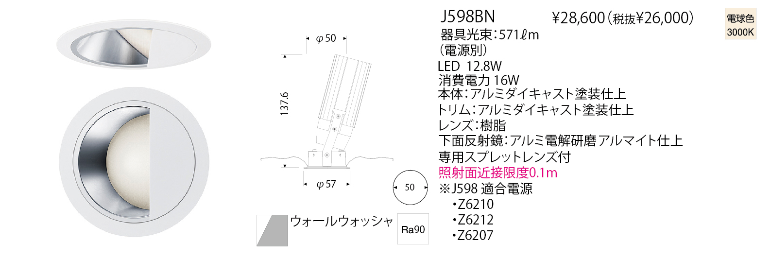 巾・φ57 埋込高・137.6 切込寸法・φ50mm