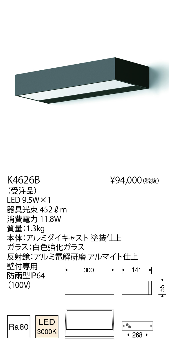光源にLEDを採用した屋外仕様のブラケットです。上下配光で角型のシンプルな形状でそれぞれ2サイズがあります。設置場所によってお選びください。