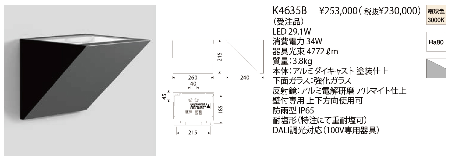K4635BとK4636Bは前方向に光を照射する配光のブラケットで上下方向で使用できます。