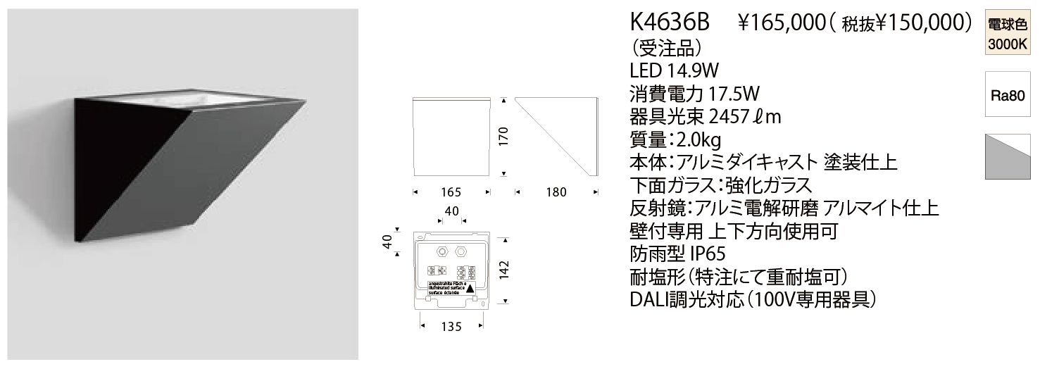 K4635BとK4636Bは前方向に光を照射する配光のブラケットで上下方向で使用できます。