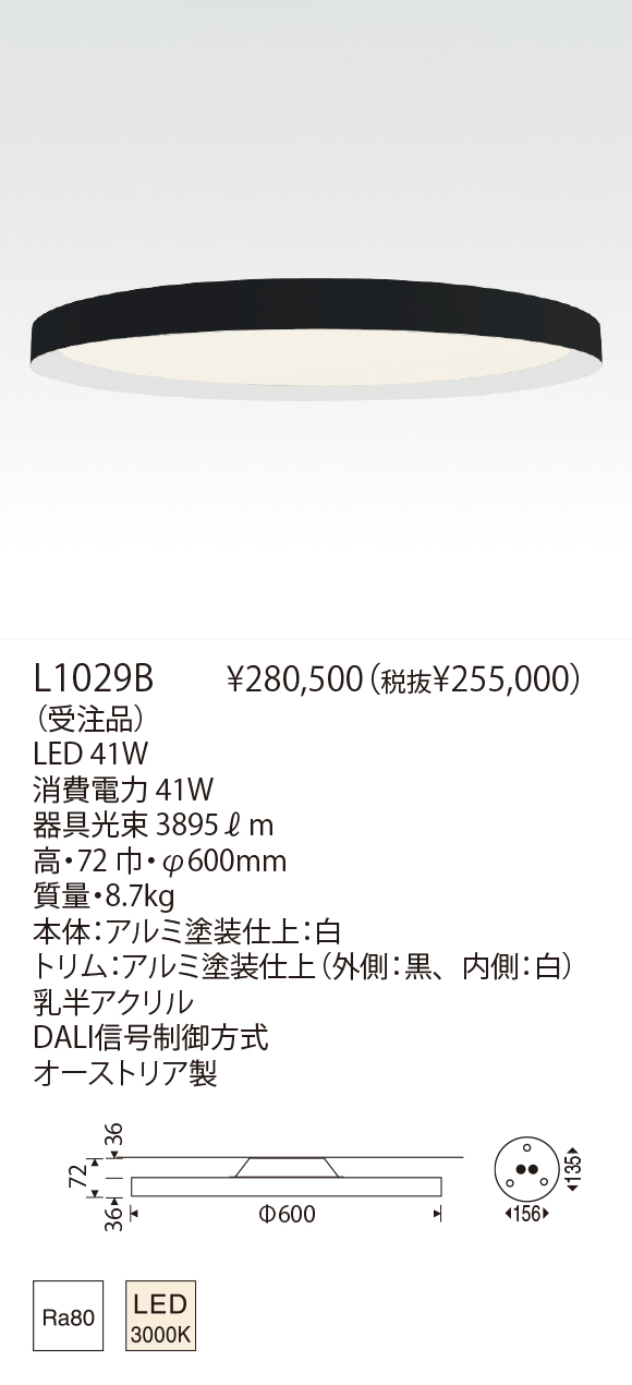 - 本体:アルミ塗装仕上:白 トリム:アルミ塗装仕上(外側:白、内側:黒) 乳半アクリル