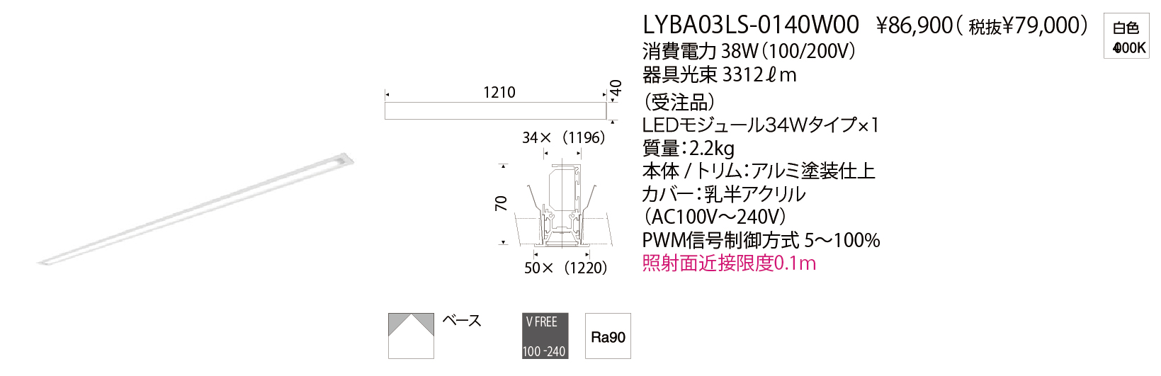 - 巾・50 奥・1220mm 埋込高・70mm 切込寸法・40×1210mm