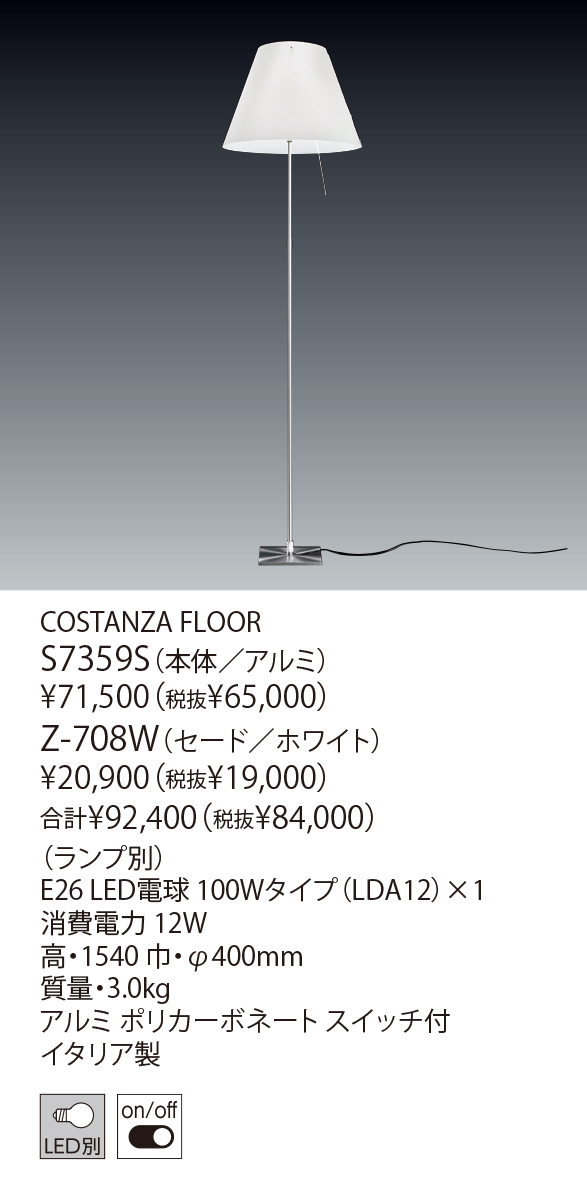 コスタンザとコスタンジーナは、ポリカーボネート製のシェードと軽量なアルミの本体で構成されたスレンダーでモダンなスタンドシリーズです。パオロ・リザットが1986年にデザインして以来、イタリアデザイン界の象徴的な存在として30年以上の時を経た今でもルーチェプラン社を代表する商品の一つとなっています。