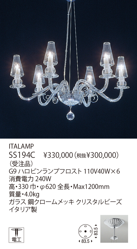 イタランプ社は1975年にマテオ・ヴィタデッロによって設立されました。イタリアの伝統的なガラス工芸技術を生かした、気品あふれるエレガントなデザインが特長です。トラディッショナルなスタイルにコンテンポラリーな解釈を加え、イタランプ独自の優雅さを生みだしています。主にアールヌーボー時代のアートからインスピレーションを得、そこから新たな創造の情熱をわき立たせています。