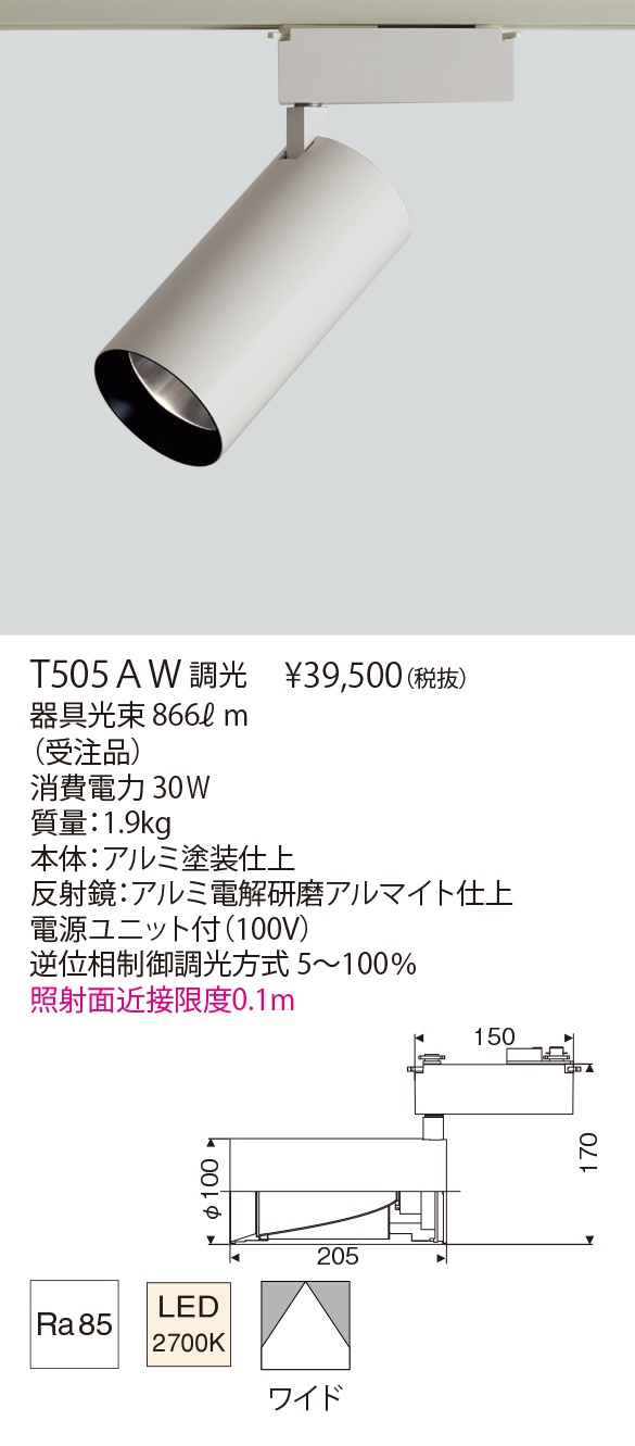 - 巾・φ100 奥・205(+電源ユニット) 高・170mm