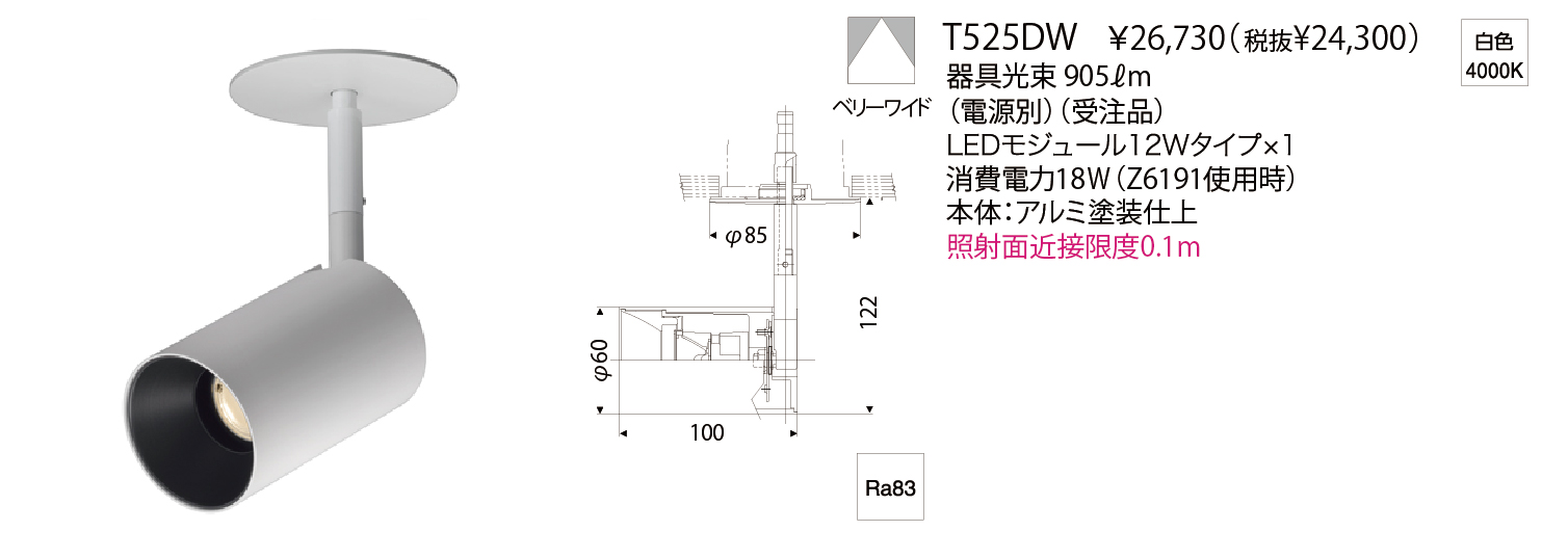 60 SPOTのシンプルで小型なデザインを生かすため電源部を天井裏に設置するタイプのスポットライトです。灯具は60 SPOTを使用するため配光および色温度は60 SPOTと同様にお選びいただけます。