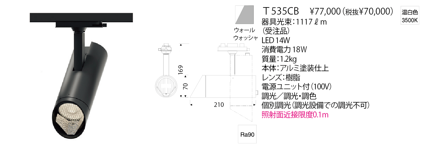 器具の存在感を極限に抑え、必要な光のみをもたらし、空間の目的や照射対象の美しさを引き立てます。直下照射時に本体に収納されるアームはシンプルでミニマムデザインです。ナロー・フラッド・ワイド・ウォールウォッシャ配光に加え、配光角度を柔軟に変更できる可変配光を追加しました。照射対象に最適な光量・光色を直感的な操作で微妙な変化を確認しながら調整が個別に可能です。演色性の高いRa90のLED素子を搭載しています。
