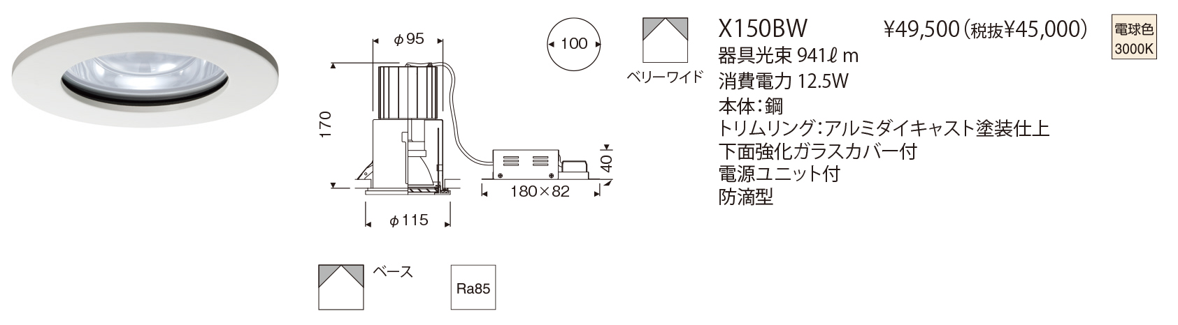 - 巾・φ115 埋込高・170 切込寸法・φ100mm
