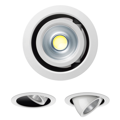 ユニバーサルタイプは引き出し方向に45°納める方向に35°の可動ができ、幅広い照射角度が得られます。3種類の配光と4種類の色温度が揃い、高効率タイプと高演色タイプに加え高彩度タイプが選択できます。高彩度タイプは色の再現性が高く、色の鮮やかさも高い光が特徴です。フラッド配光で採用しているφ9mmの発光面モジュールは点光源に近いためよりシャープな光となります。