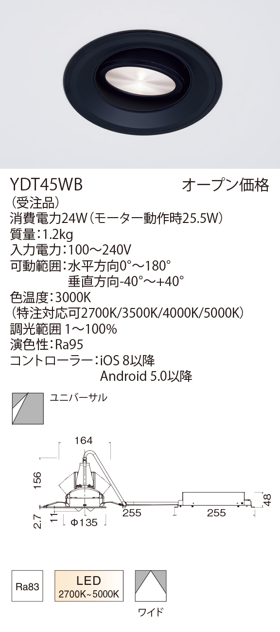 調光範囲:5~100% 通信使用・距離:Bluetooth4.0・約20m