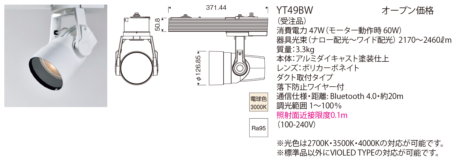 色温度:3000K(特注対応2700K/3500K/4000K)