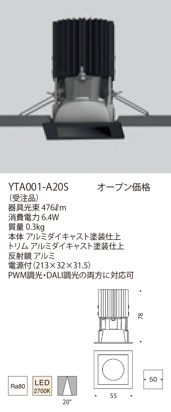 - 巾・□55 埋込高・78mm 切込寸法・□50mm