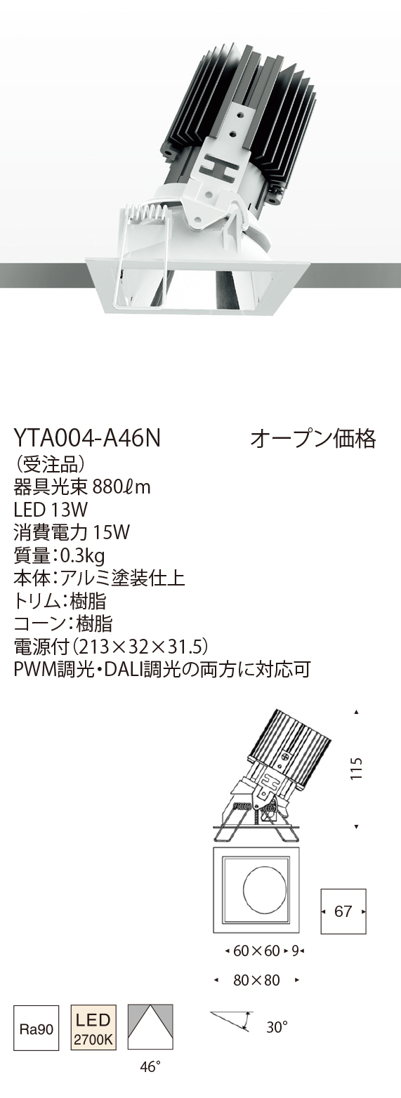 - 巾・□80 埋込高・115mm 切込寸法・□67mm