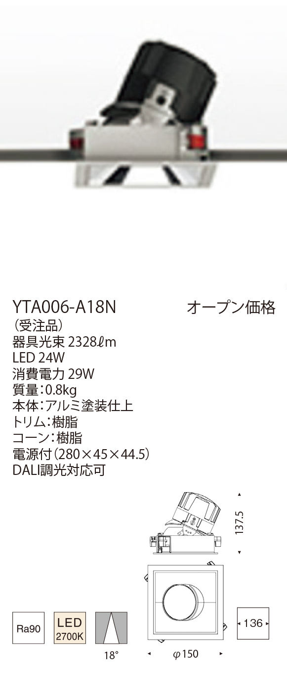 - 巾・□150 埋込高・137.5mm 切込寸法・□136mm