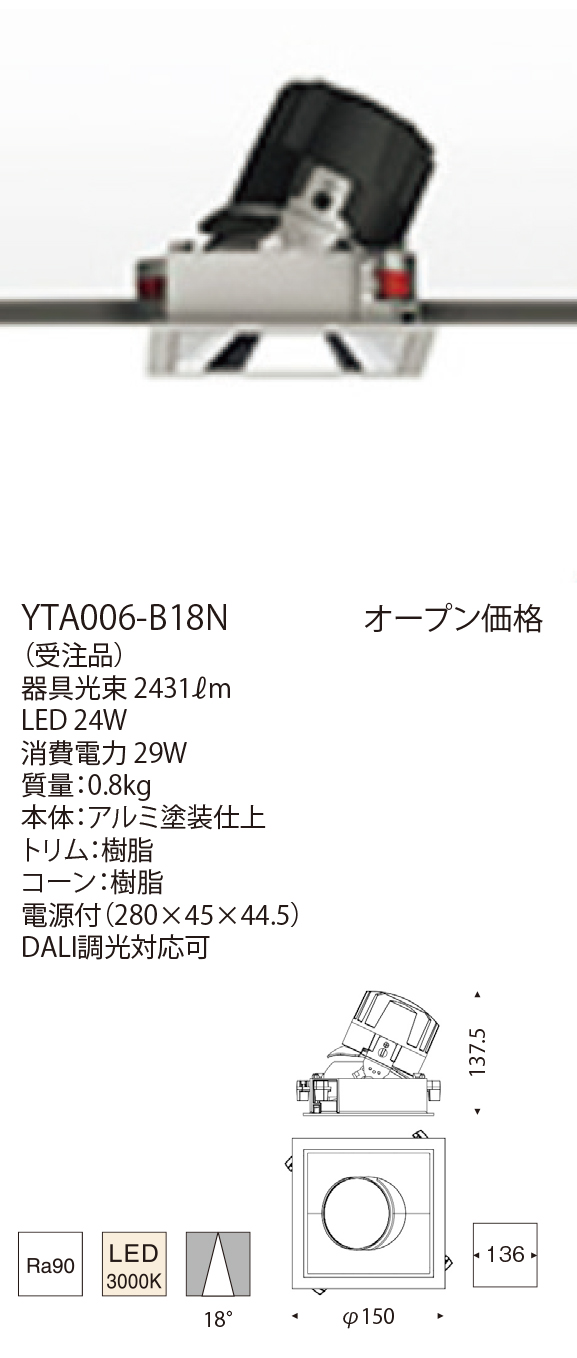 - 巾・□150 埋込高・137.5mm 切込寸法・□136mm