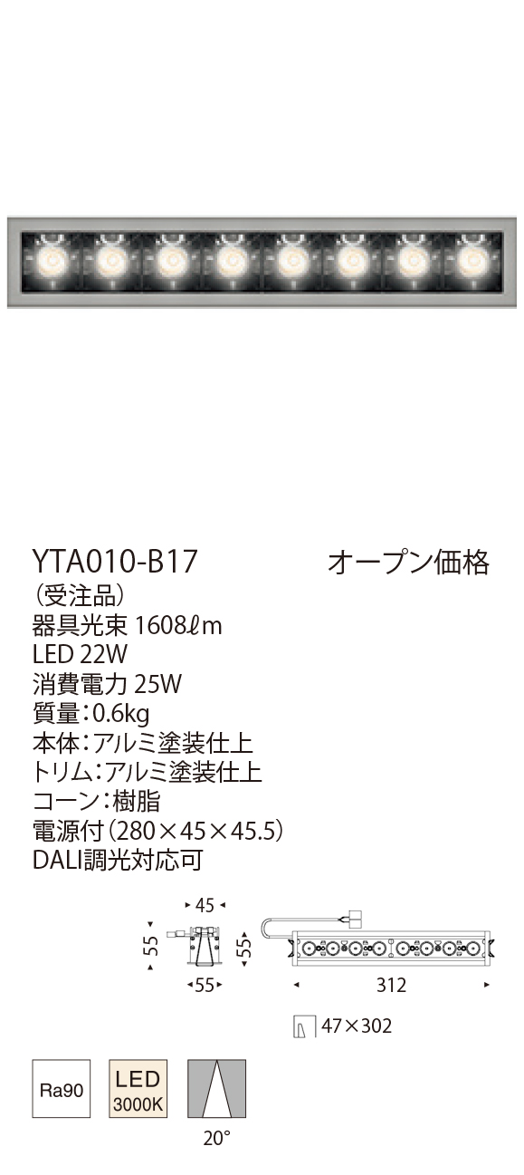 高効率な光学システムにより、視野内のグレアの原因となる光をカットした器具です。器具巾55mmで、1灯用・2灯用・4灯用・8灯用の4タイプがあるスリムなシリーズです。また、均一性の高い発光により、多灯タイプで発生しやすいマルチシャドウを制御しています。