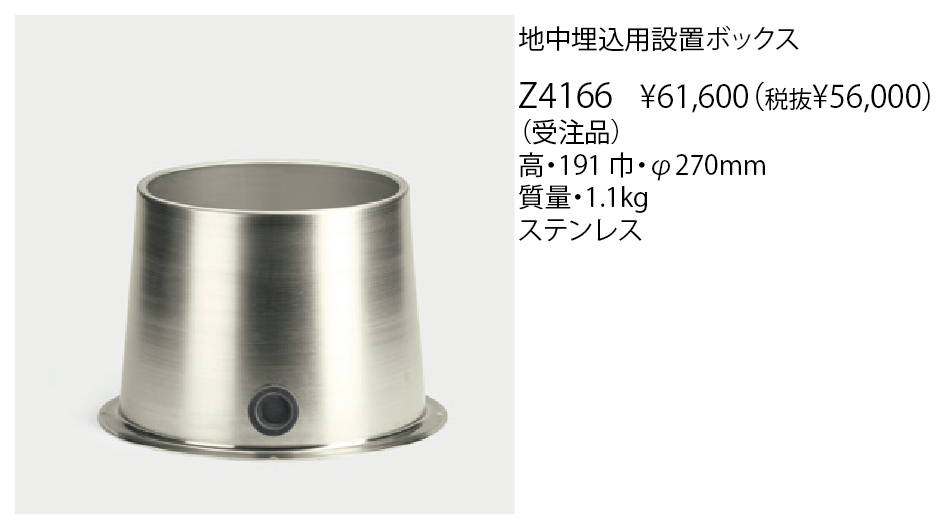 BEGA(ベガ/ドイツ) IN-GROUND LUMINAIRE 設置ボックス Z4166 税込み価格: 68,200円 (税抜 62,000円) 器具径Φ205の地中埋設用設置ボックスです。 カタログを閲覧 Main Spec 寸法 高・191 巾・φ270mm 重さ・質量 1.1kg 材質・仕上 ステンレス 取付方法 地中埋設型 国名 ドイツ製 特記事項 ※設置ボックス 備考 (受注品) Download データダウンロード チェックしたファイルをダウンロードします。 チェック全てをダウンロード 全て選択 小組画像 仕様図 取扱説明書 姿図1 姿図2 配光データ IESデータ 商品画像 3D CAD REVITデータ