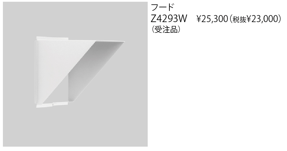 BEGA(ベガ/ドイツ) FLOOD LIGHT フード(カタログ非掲載) Z4293W 税込み価格: 28,600円 (税抜 26,000円) 角型フラッドライトシリーズのオプションフードです。 生産完了品 Main Spec 材質・仕上 ステンレス粉体塗装仕上 国名 ドイツ製 特記事項 ※ホワイト※シルバータイプ対応可※カタログ非掲載品の価格や仕様はカタログ掲載当時の内容です 備考 (受注品)※カタログ非掲載品の価格や仕様はカタログ掲載当時の内容です Download データダウンロード チェックしたファイルをダウンロードします。 チェック全てをダウンロード 全て選択 小組画像 仕様図 取扱説明書 姿図1 姿図2 配光データ IESデータ 商品画像 3D CAD REVITデータ