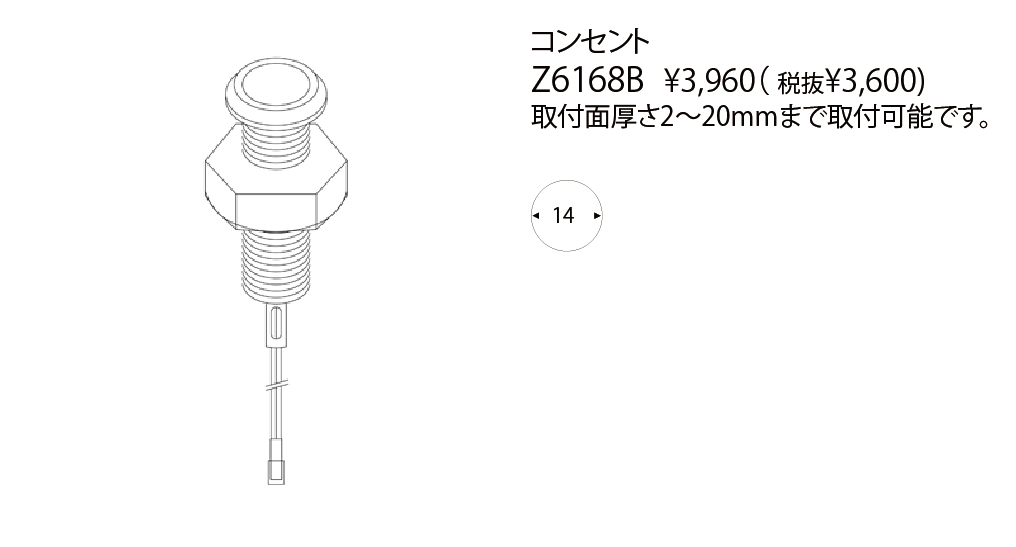 YAMAGIWA LED JACK SPOT コンセント(生産完了品) Z6168B オープン価格 LED JACK SPOT のコンセントです。 生産完了品 カタログを閲覧 Main Spec 寸法 巾・φ17 高・2 埋込深・53 mm 切込寸法・φ14mm 重さ・質量 0.01kg 材質・仕上 アルミアルマイト仕上 取付方法 埋込型 取付条件 取付面厚さ2~20mmまで取付可能です 特記事項 ※コンセント 備考 ※カタログ非掲載品の価格や仕様はカタログ掲載当時の内容です Download データダウンロード チェックしたファイルをダウンロードします。 チェック全てをダウンロード 全て選択 小組画像 仕様図 取扱説明書 姿図1 姿図2 配光データ IESデータ 商品画像 3D CAD REVITデータ Related Items 関連商品