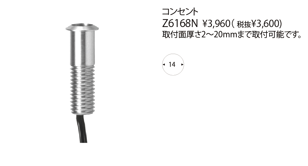 YAMAGIWA LED JACK SPOT コンセント(生産完了品) Z6168N オープン価格 LED JACK SPOT のコンセントです。 生産完了品 カタログを閲覧 Main Spec 寸法 巾・φ17 高・2 埋込深・53 mm 切込寸法・φ14mm 重さ・質量 0.01kg 材質・仕上 アルミアルマイト仕上 取付方法 埋込型 取付条件 取付面厚さ2~20mmまで取付可能です 特記事項 ※コンセント 備考 ※カタログ非掲載品の価格や仕様はカタログ掲載当時の内容です Download データダウンロード チェックしたファイルをダウンロードします。 チェック全てをダウンロード 全て選択 小組画像 仕様図 取扱説明書 姿図1 姿図2 配光データ IESデータ 商品画像 3D CAD REVITデータ Related Items 関連商品
